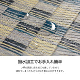 はっ水加工付きで飲み物などをこぼしてもサッと拭きれ汚れにくく、裏面は滑りにくい加工でズレにくいから安心。季節によって敷物を替えたい方に嬉しいコンパクトに折りたためる仕様です。