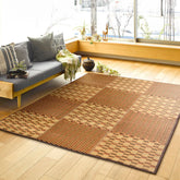 涼しさを感じるい草ラグ 和風な市松柄 ウレタン入りでふっくらボリューム キハチ