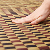 八丈島に伝わる草木染めの絹織物「黄八」 をイメージしてデザインされた和モダンテイストのい草ラグ。風情のある織り柄は、シャープさも兼ね備え和洋問わず空間に寄り添います。
