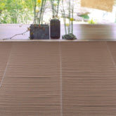 汚れても手軽に水洗いできる、い草風カーペット。ペットとの快適な暮らしや、アウトドアにも最適です。モダンなリビングにも合う様なデザインに仕上げました。