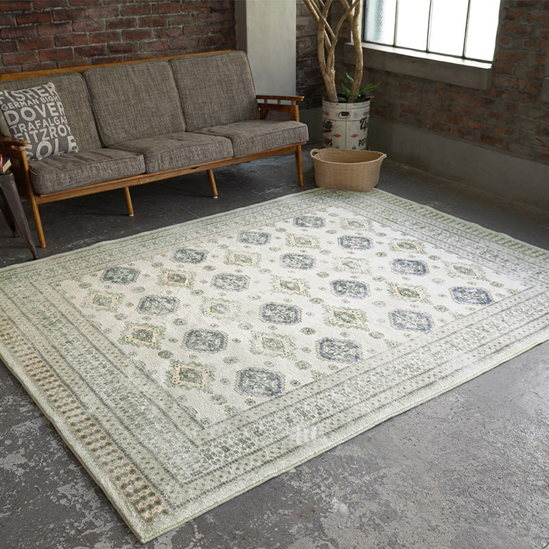 民族模様ボハラ柄のプリントラグ ふわっとしたパイルの上の民族文様のモチーフをプリント