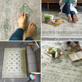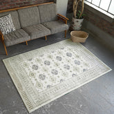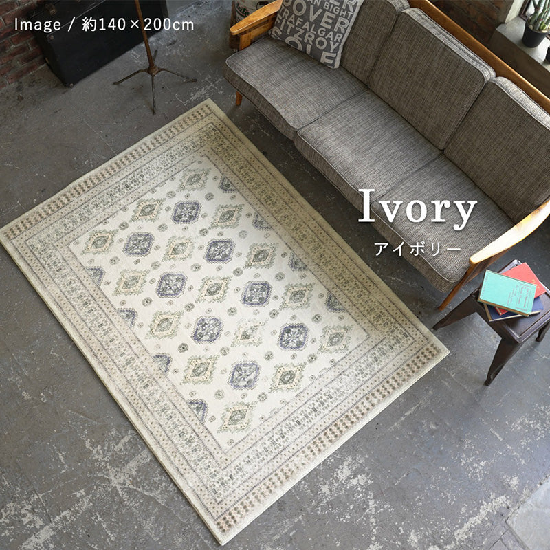 ふわっとしたパイルの上に民族文様のモチーフをプリント。 デザインが主張しすぎない落ち着いた色味のアイボリーとベージュの2色展開でシックな1枚です。