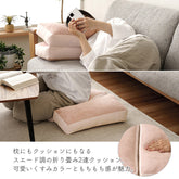 オールシーズン使えるスエード調のクッションシリーズ くすみカラーがかわいいグリーン・グレー・ピンクの3色展開 枕にもクッションにもなる折り畳み2連クッション