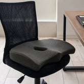 長時間のデスクワークで「お尻が痛い」と思った方にオススメです。 お尻をすっぽり、太ももをしっかり支えてくれるくぼみがあることでフィット感があります。 気になる蒸れも中央の穴で通気性良くしています。 裏は滑り止めがあり、ズレにくくなっています。
